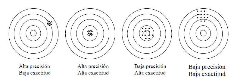 Precisión se refiere a la dispersión del conjunto de valores obtenidos de mediciones repetidas de una magnitud de un mismo objeto, o de objetos similares, bajo condiciones especificadas. Cuanto menor es la dispersión mayor la precisión. Es habitual que la precisión de una medida se exprese numéricamente mediante medidas de dispersión tales como la desviación típica, la varianza o el coeficiente de variación bajo las condiciones de especificidad. La precisión se utiliza para definir la repetibilidad de medida, la precisión intermedia y la reproducibilidad.
